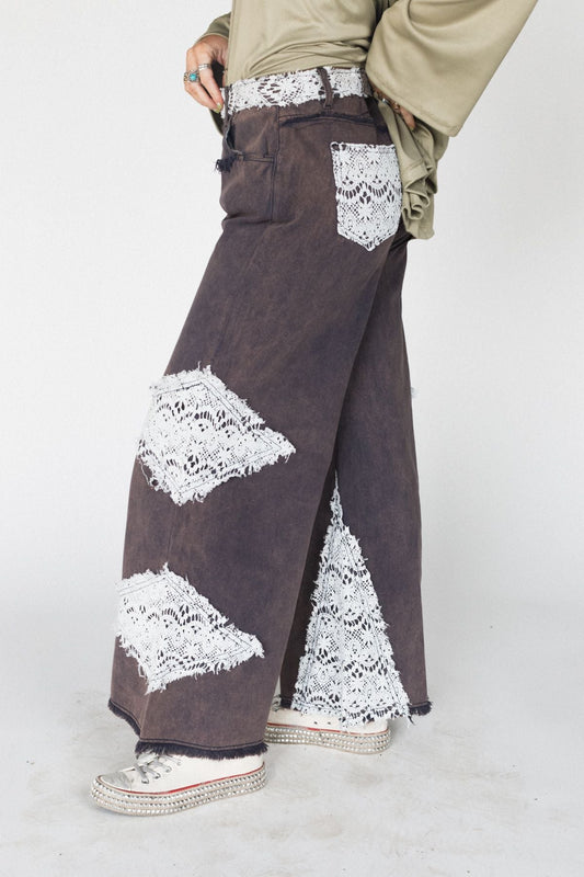 SAVE 19%Flower Power Patchwork Pants - Taupe