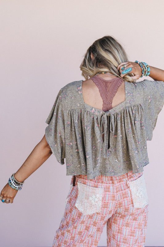 The Nest Dream in Flowers Flare Pants - Peach Coral