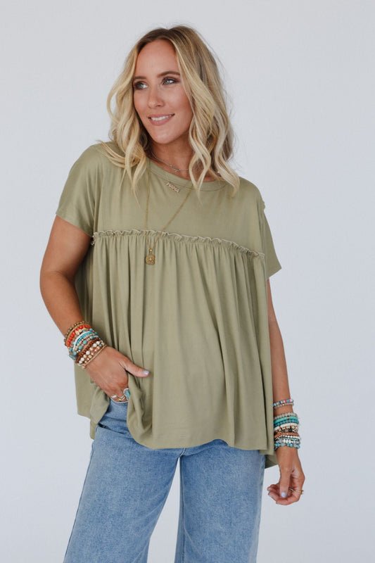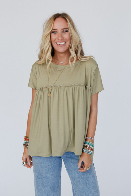 Sunday Morning Babydoll Top - Light Olive
