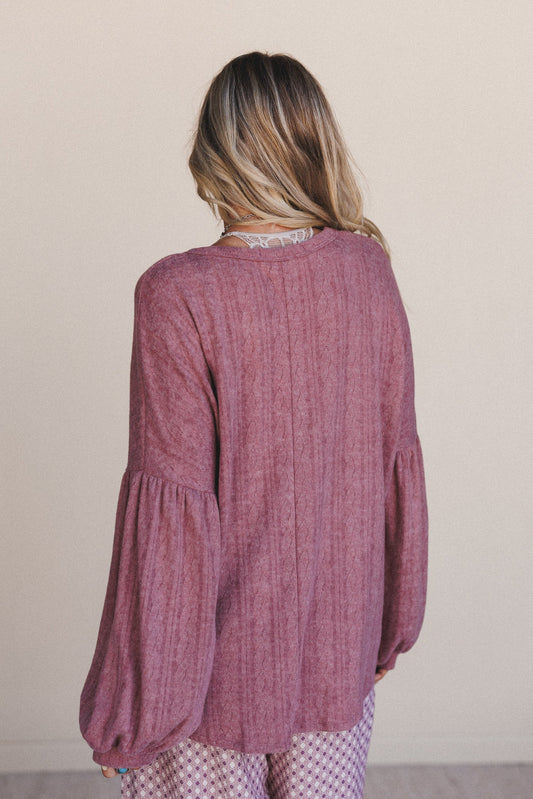 The Nest Sweet Heart Balloon Sleeve Knit Sweater - Mulberry