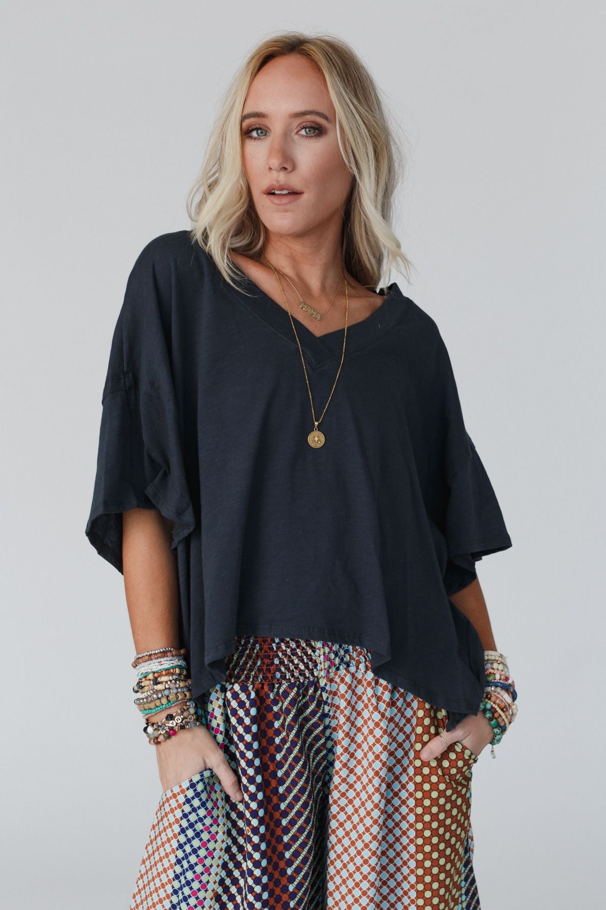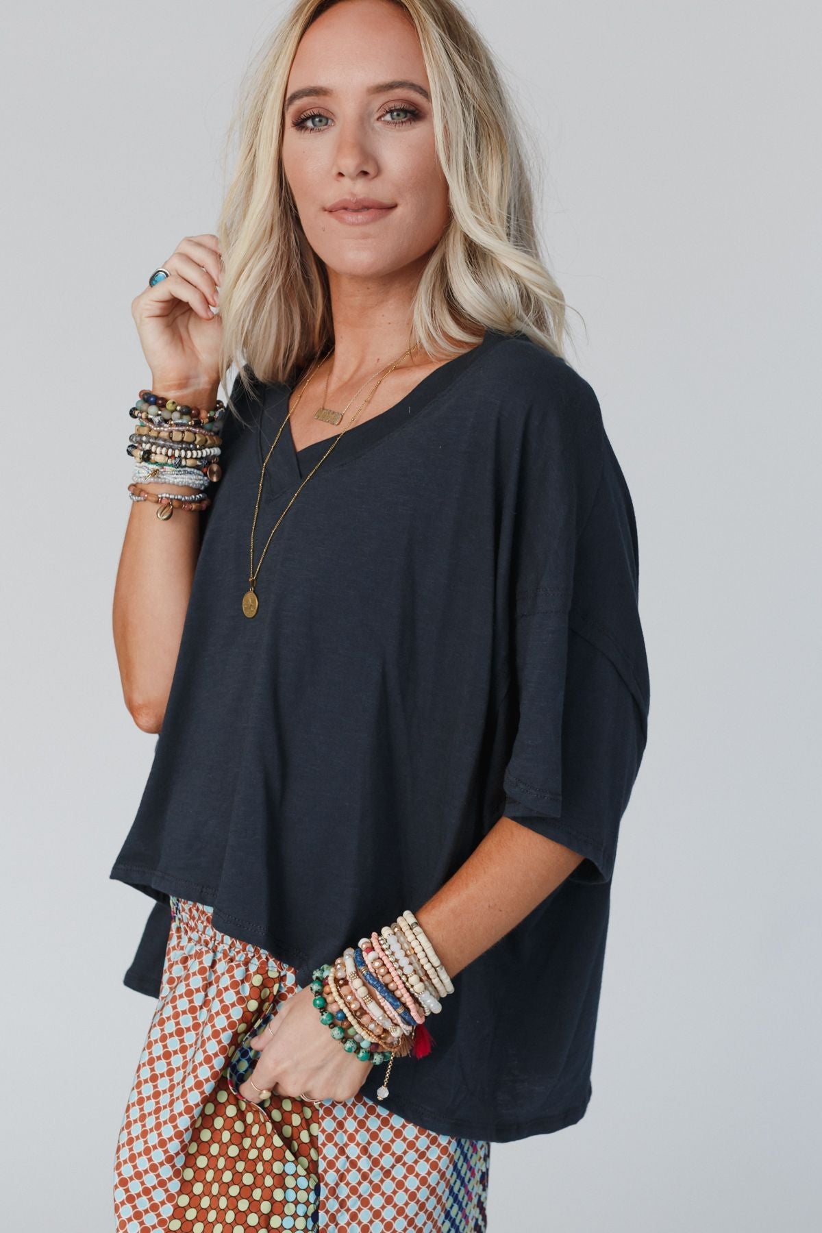 This Cozy Oversized Slub V-Neck Top is the perfect tee for you with a boho silhouette that can't be beat! It features: