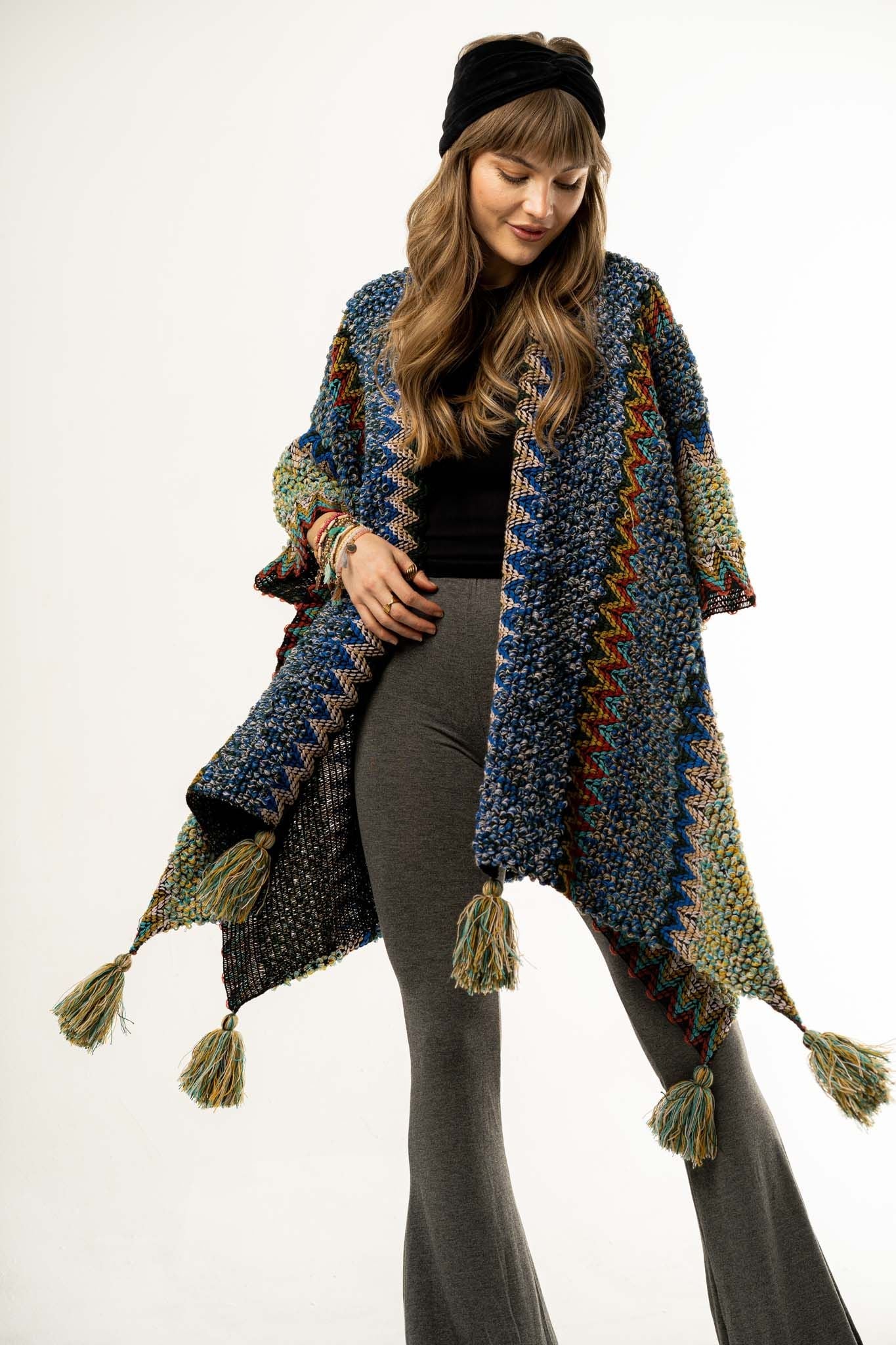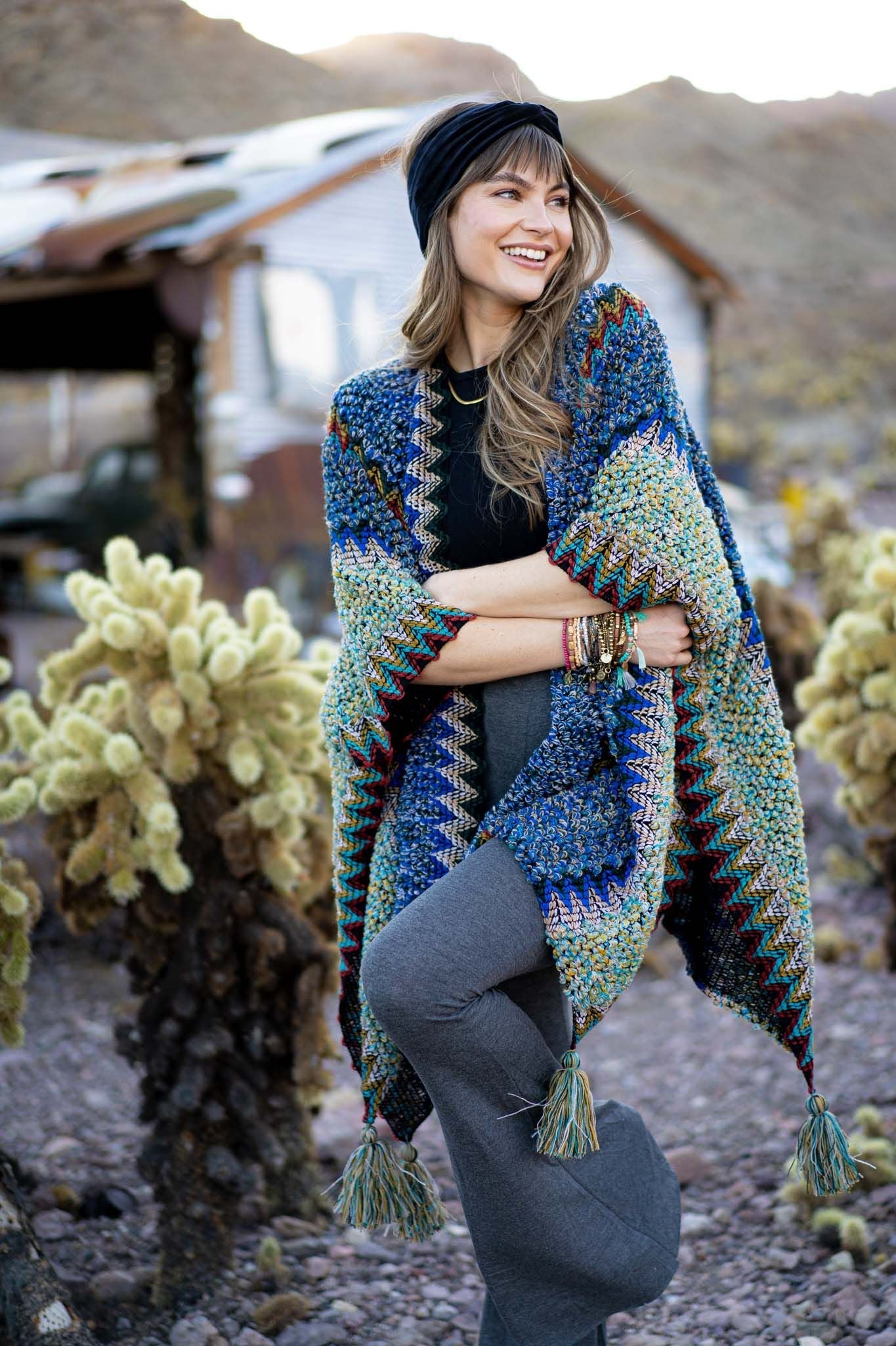 Both bold and easy, this Desert Dreams Crochet Ruana is the easy throw-on statement piece needed in every boho closet!