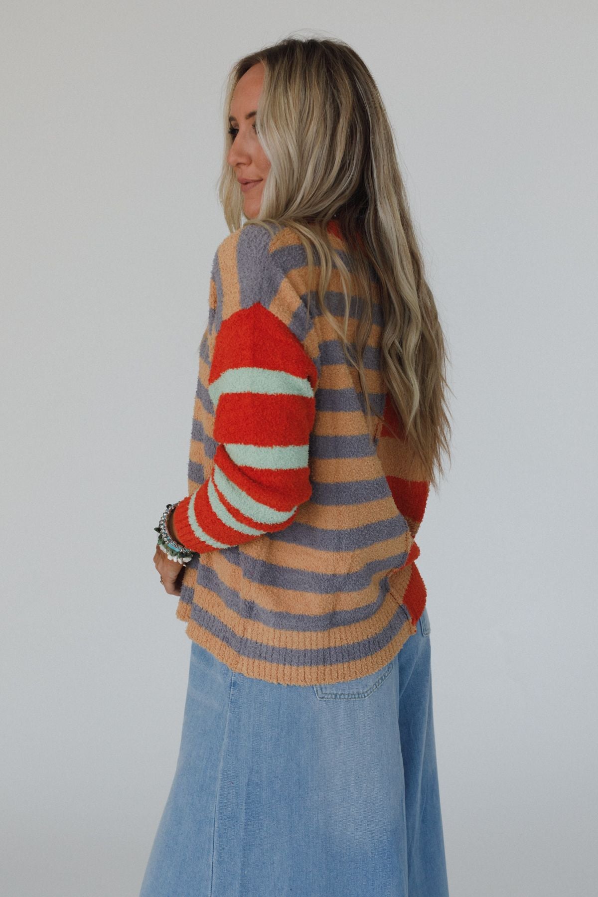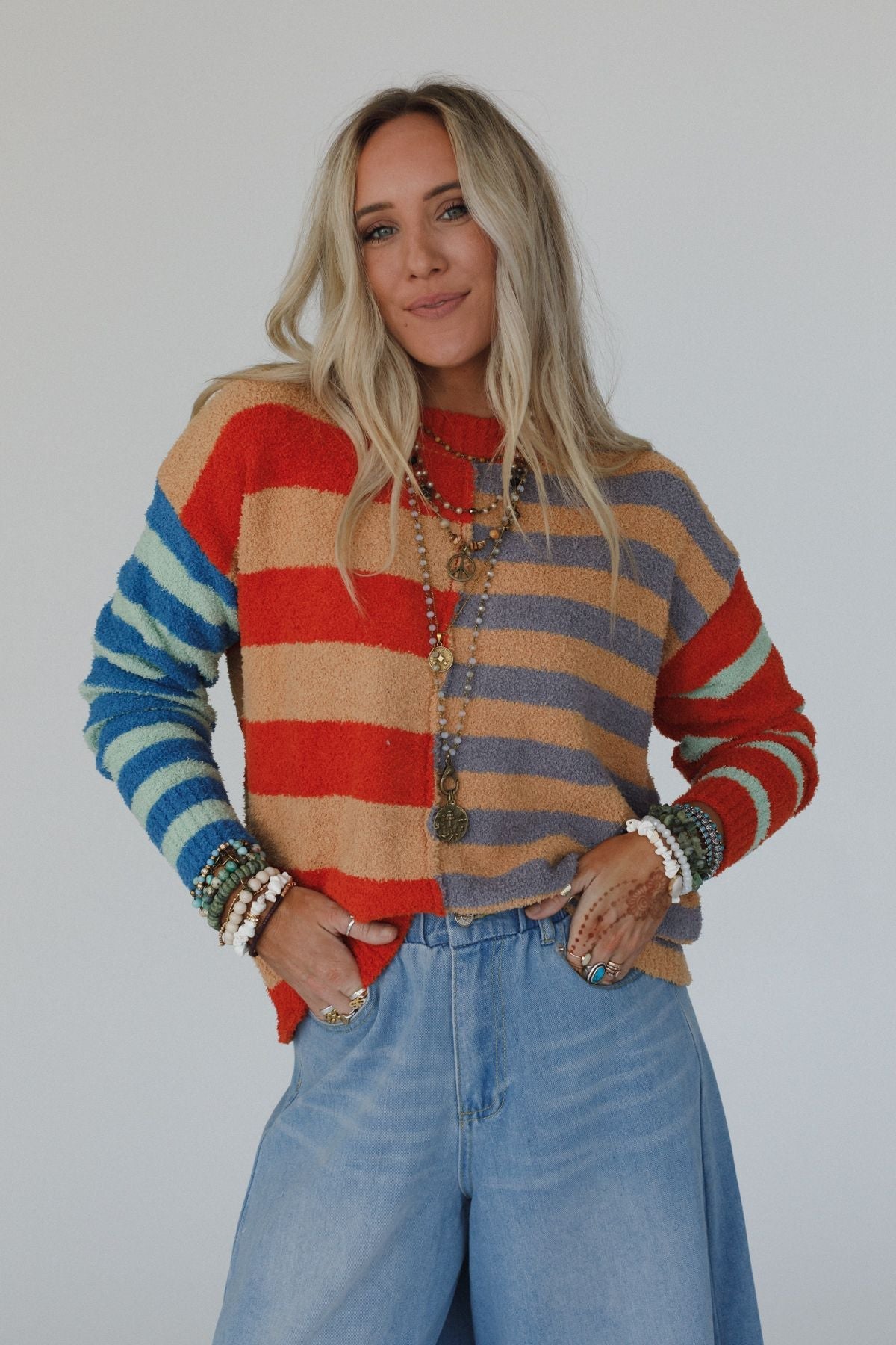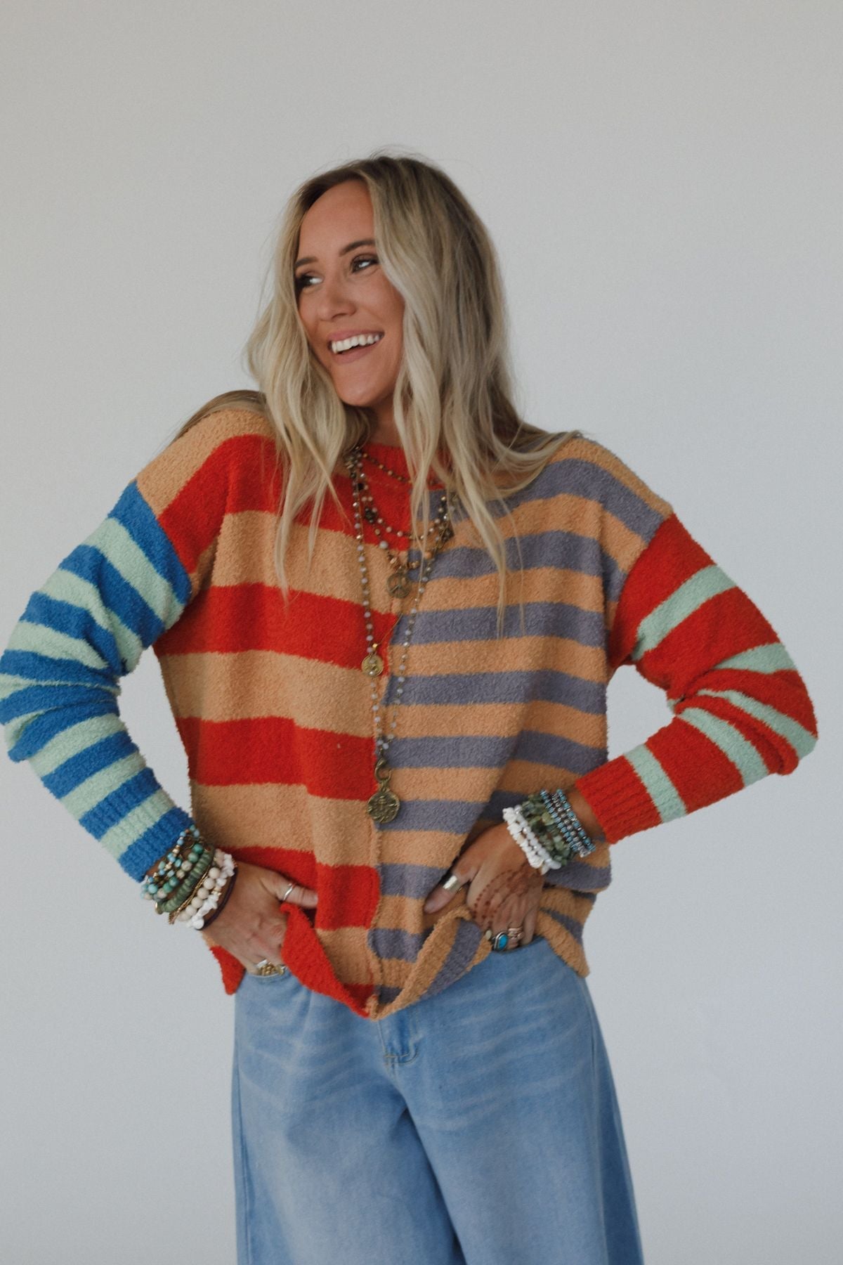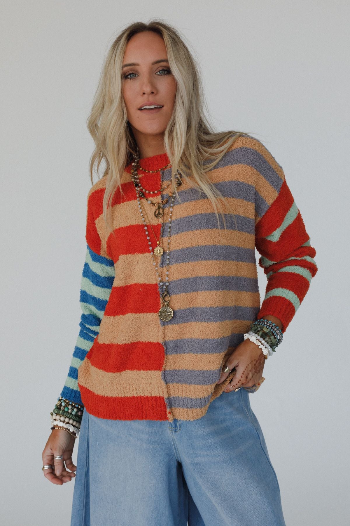 You're going to love the Dulcie Striped Sweater – the perfect blend of boho-chic and comfortable! Whether you're running errands or catching up with friends, this effortless top will keep you looking stylish and feeling confident all day long!