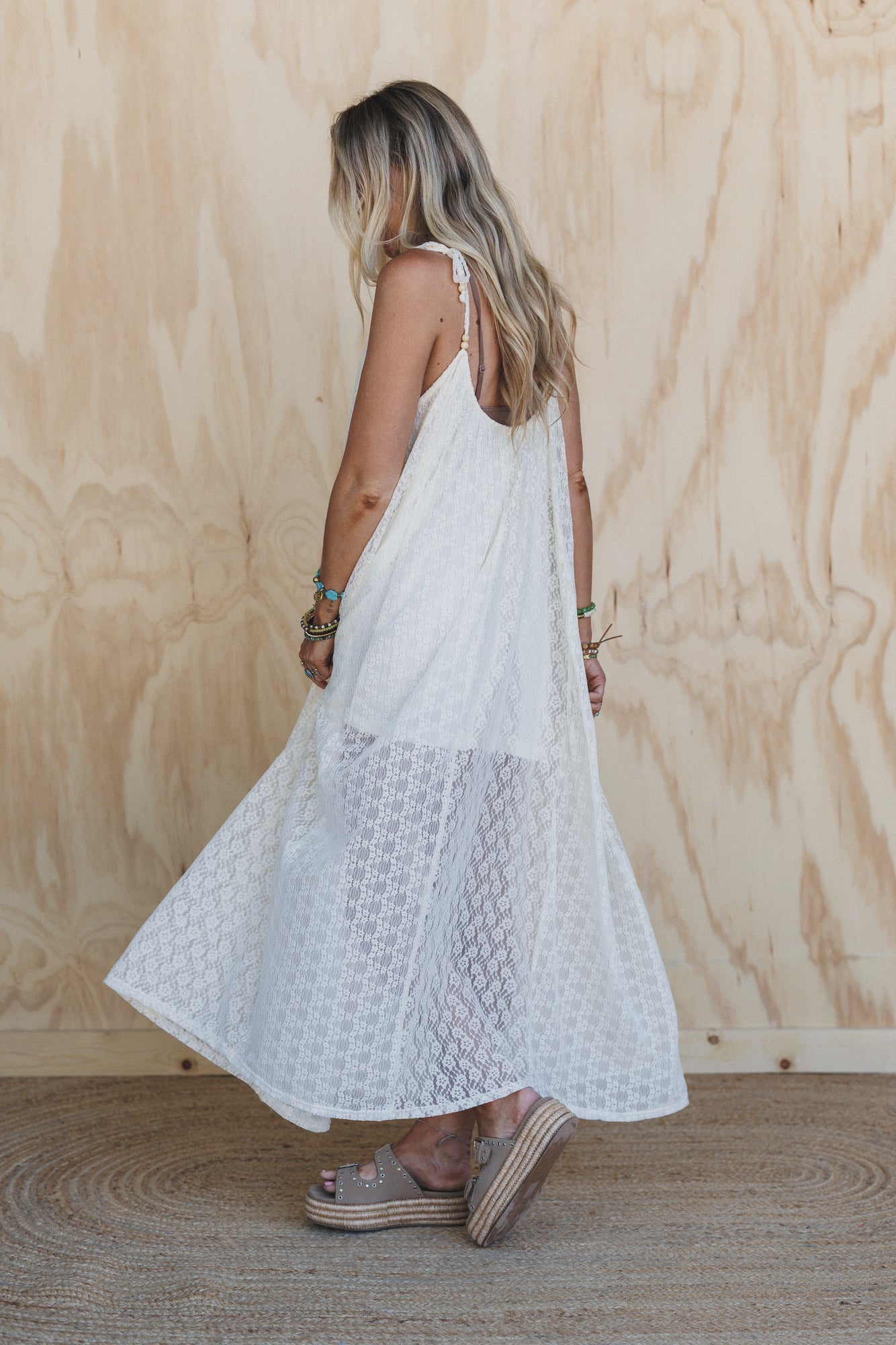 Get festival-ready with this ethereal lace dress. All you need is a denim jacket and pair of boots.
