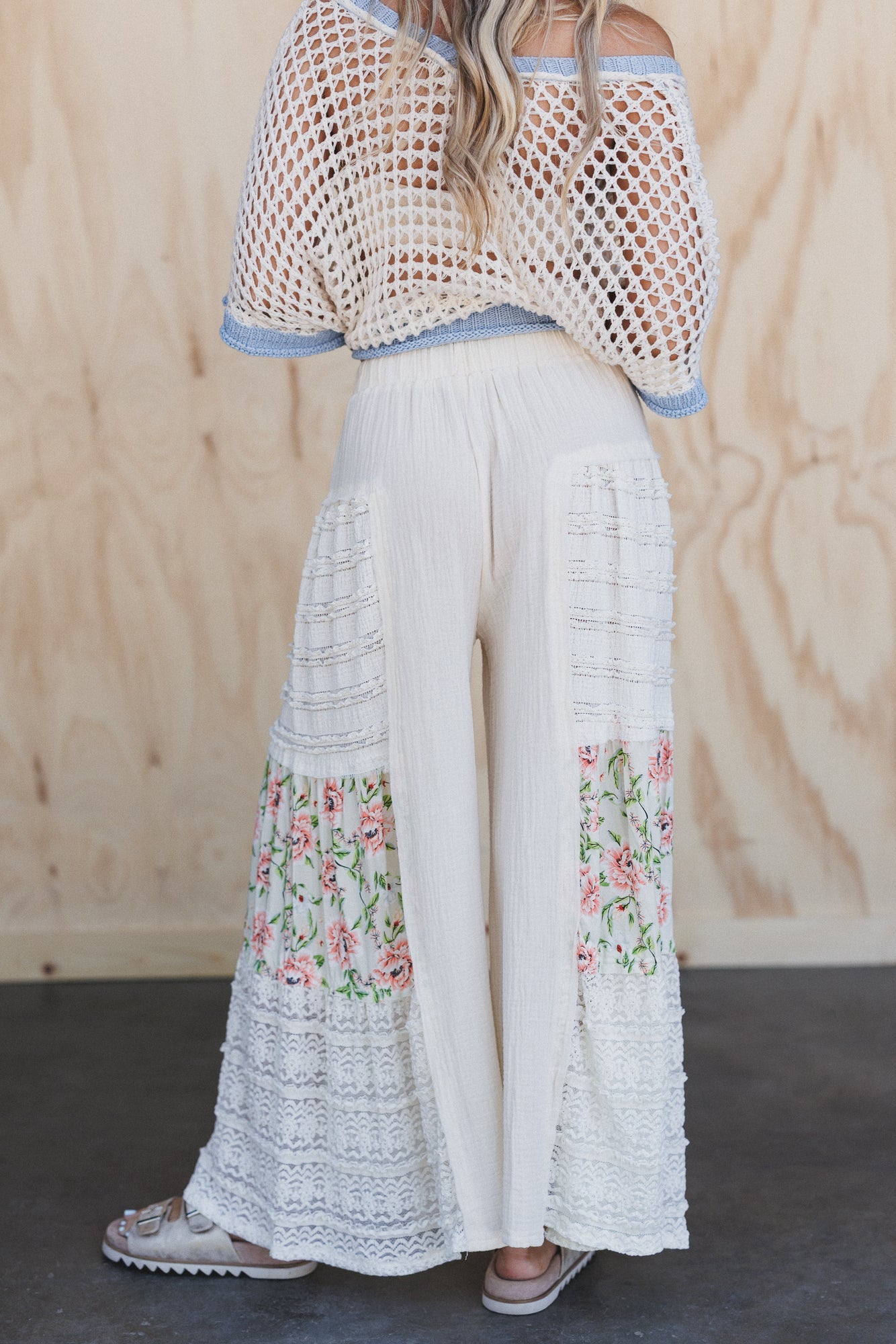 These light and flowy wide leg pants combine floral and lace for super romantic vibes.