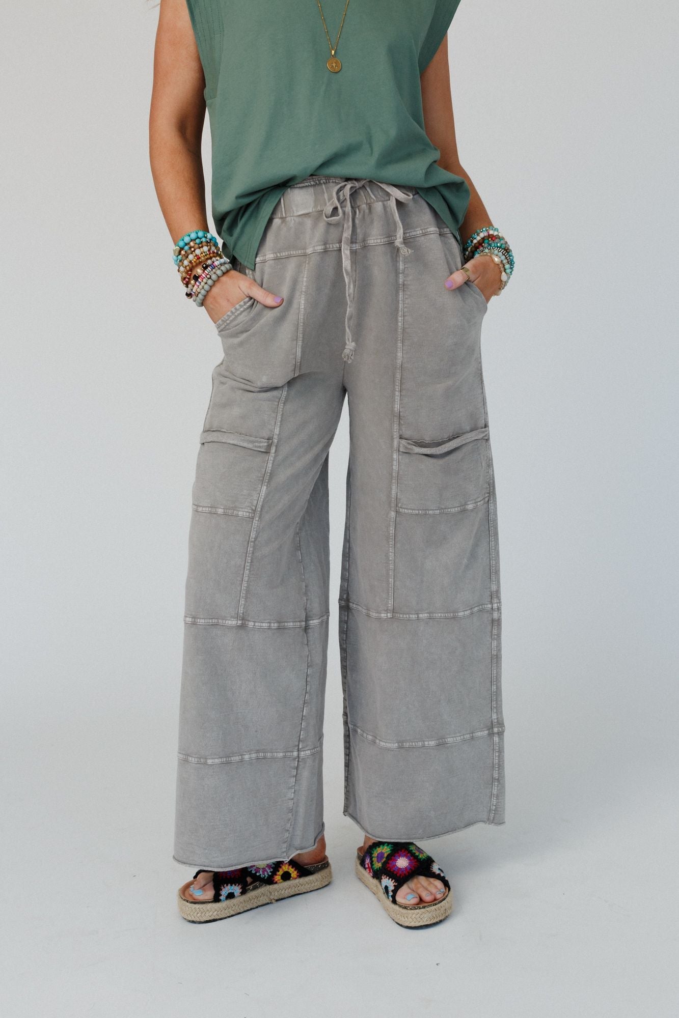 Lucky One Wide Leg Full Pant - Olive Gray