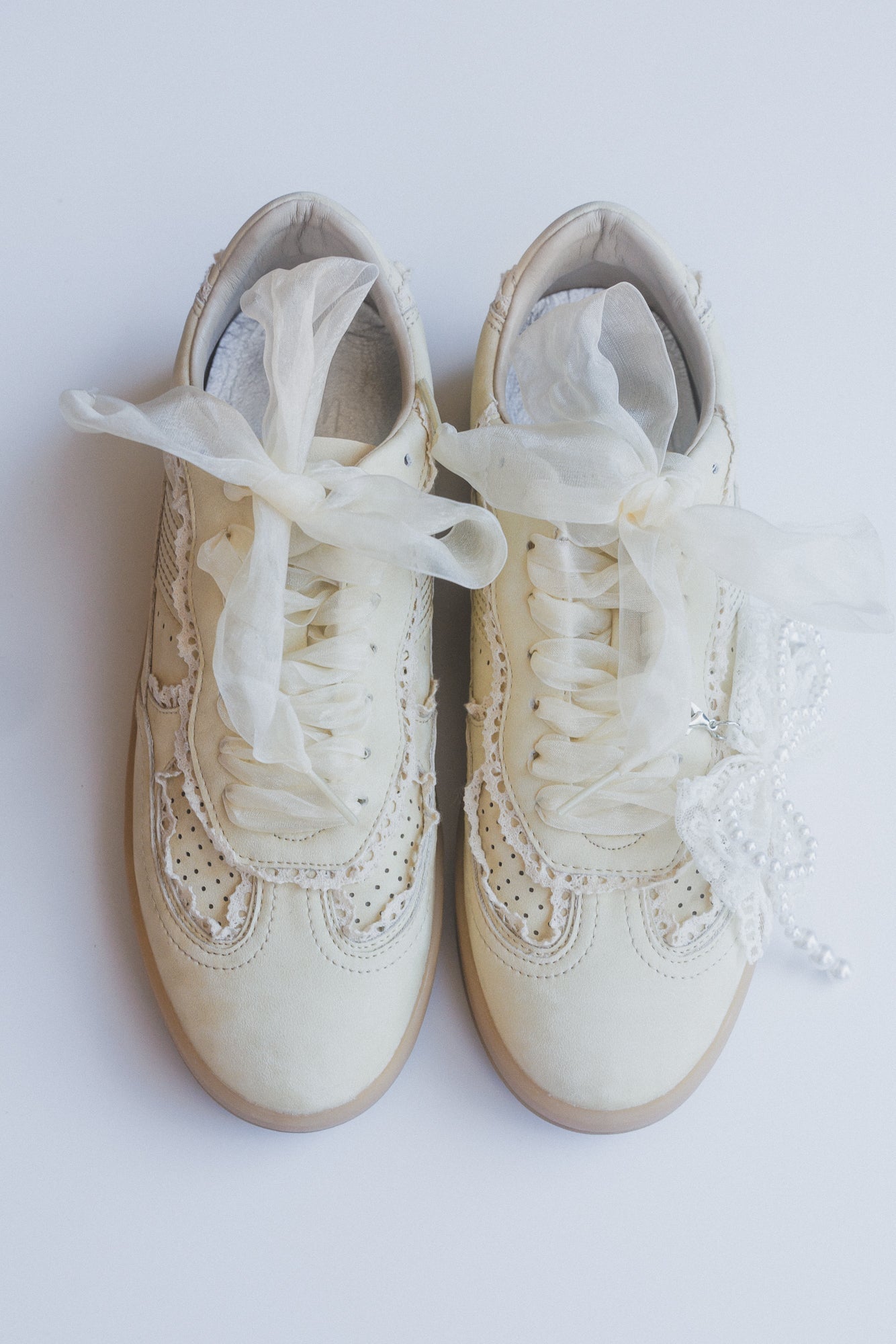 • Material: Vegan Leather Upper with Organza Laces & Charms