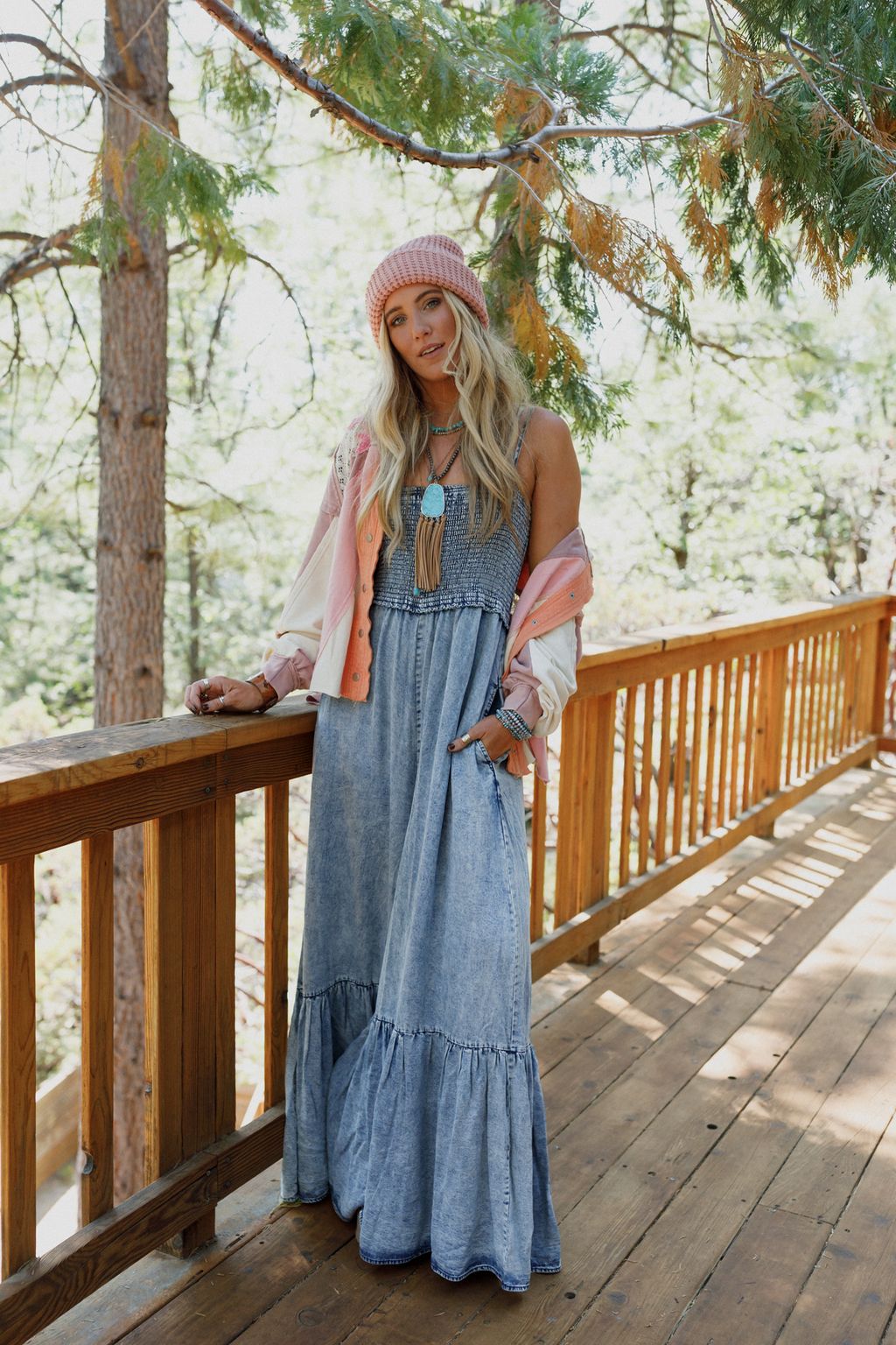Get ready to channel your inner bohemian goddess with the Nostalgia Denim Jumpsuit. You'll look effortlessly boho-chic and ready-to-go in this stunning one-piece!