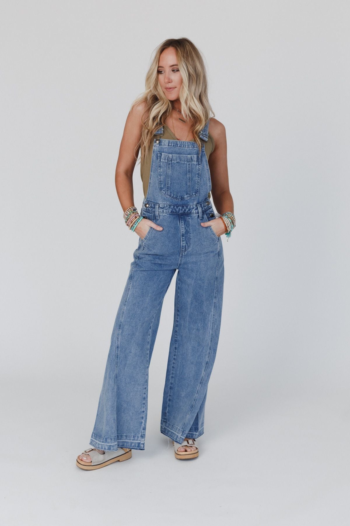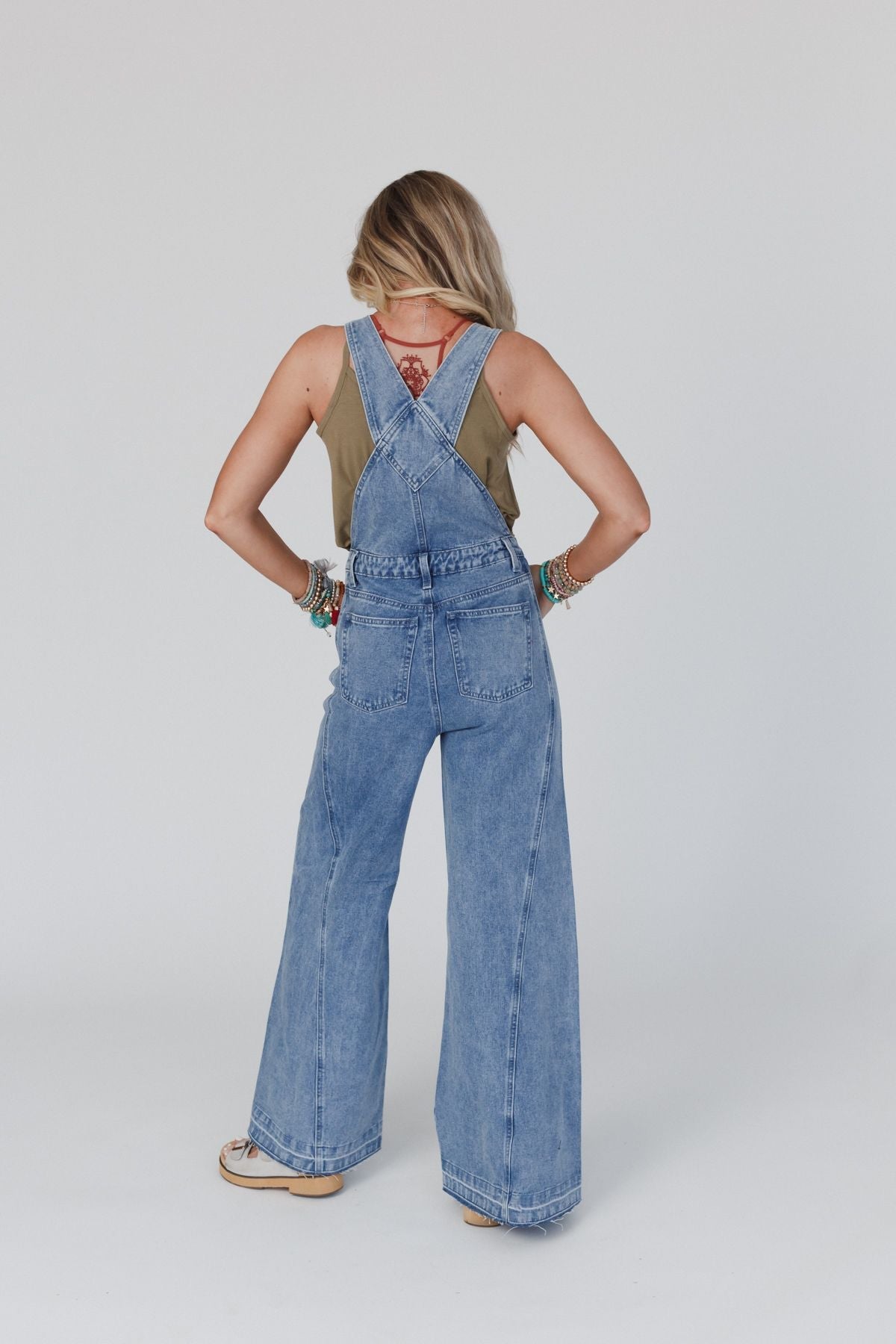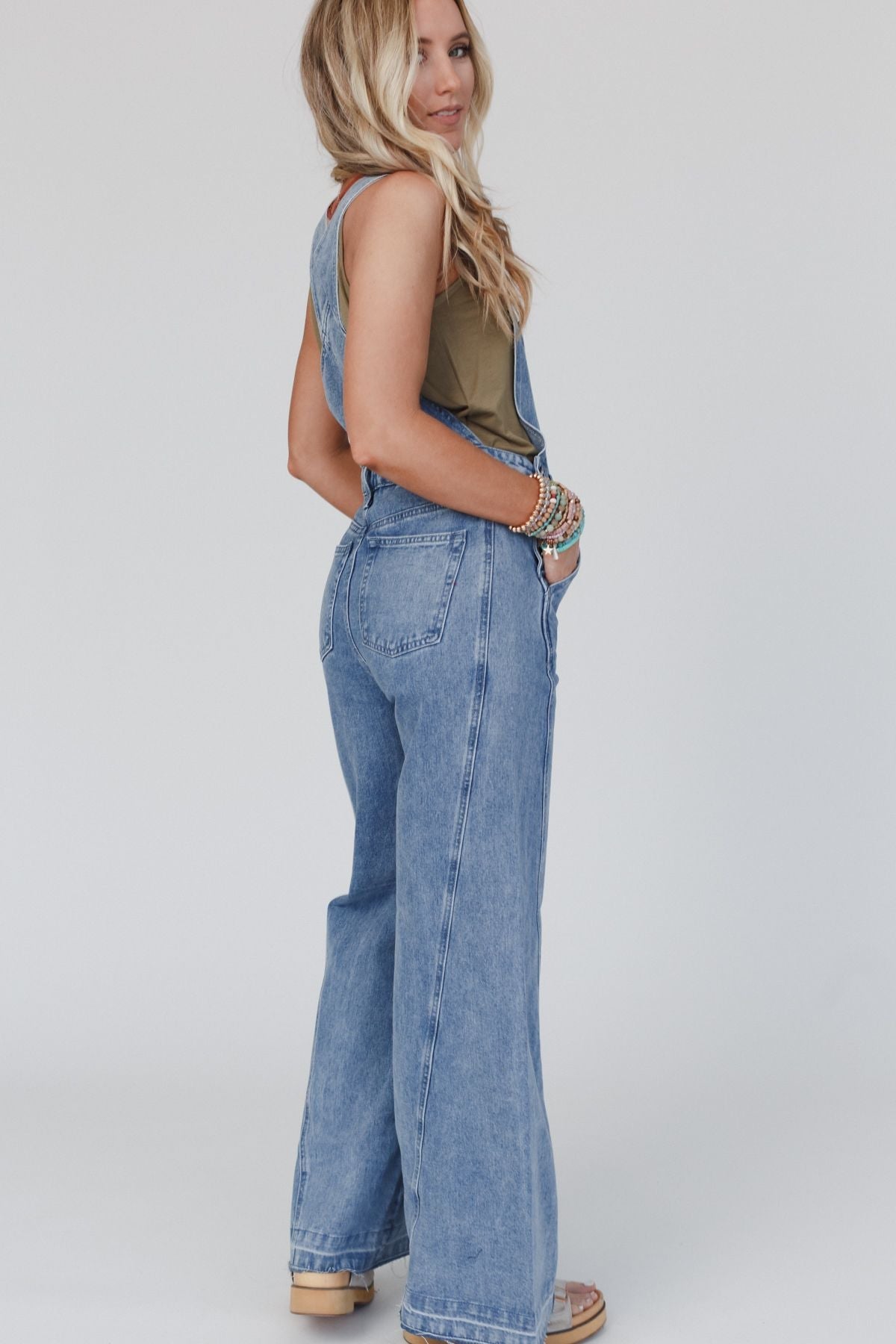 Perfect Throwback Wide Leg Overalls - Light Denim