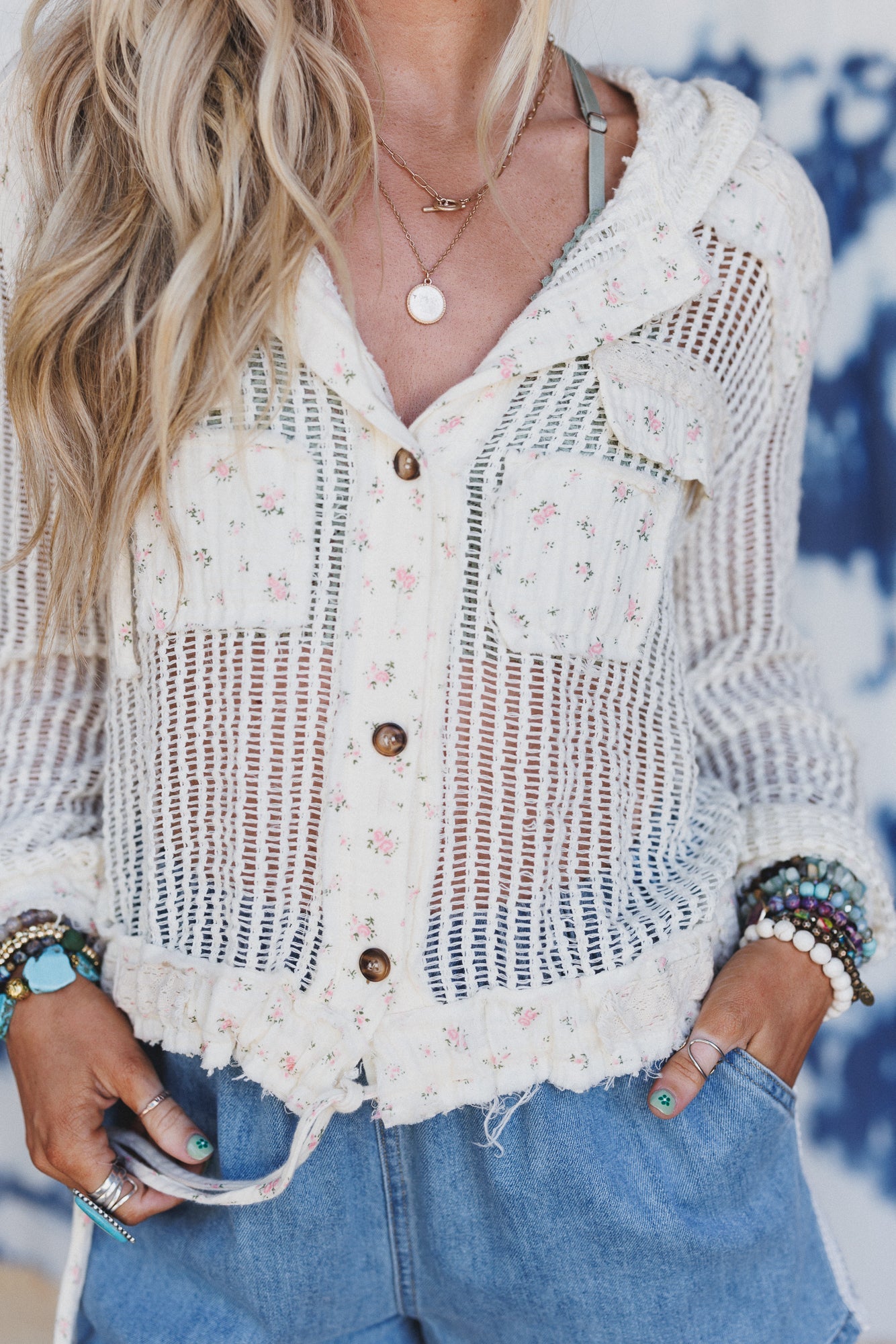 - This sheer lace hoodie is all you need to instantly elevate any tee and jeans look.