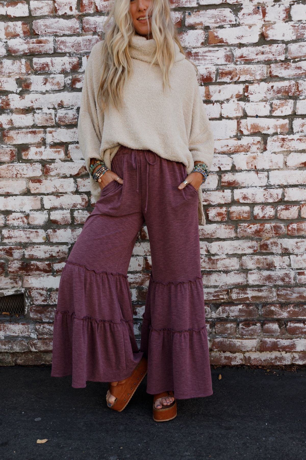 The Nest Milla Ruffled Wide Leg Pants - Burgundy