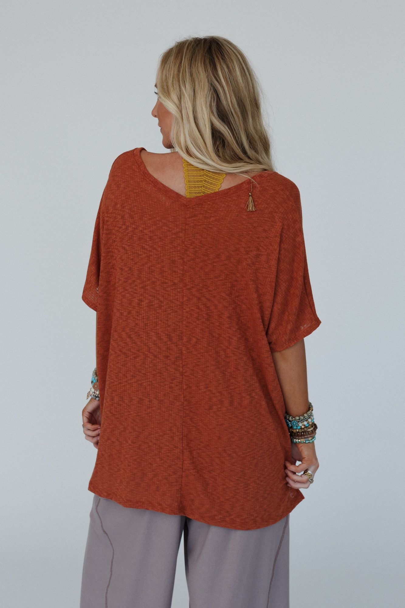 The Nest Warm Nights V Neck Top - Cayenne