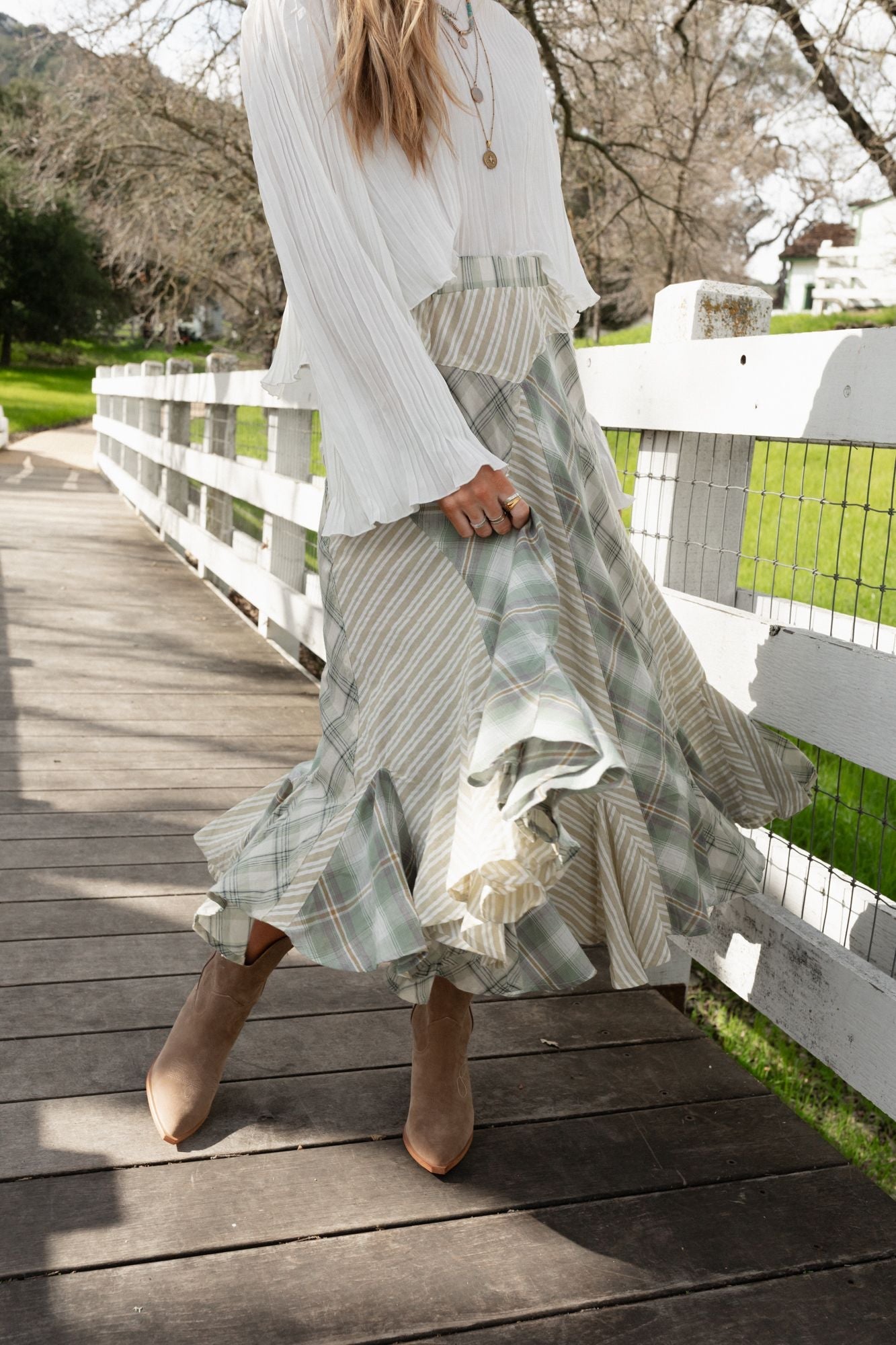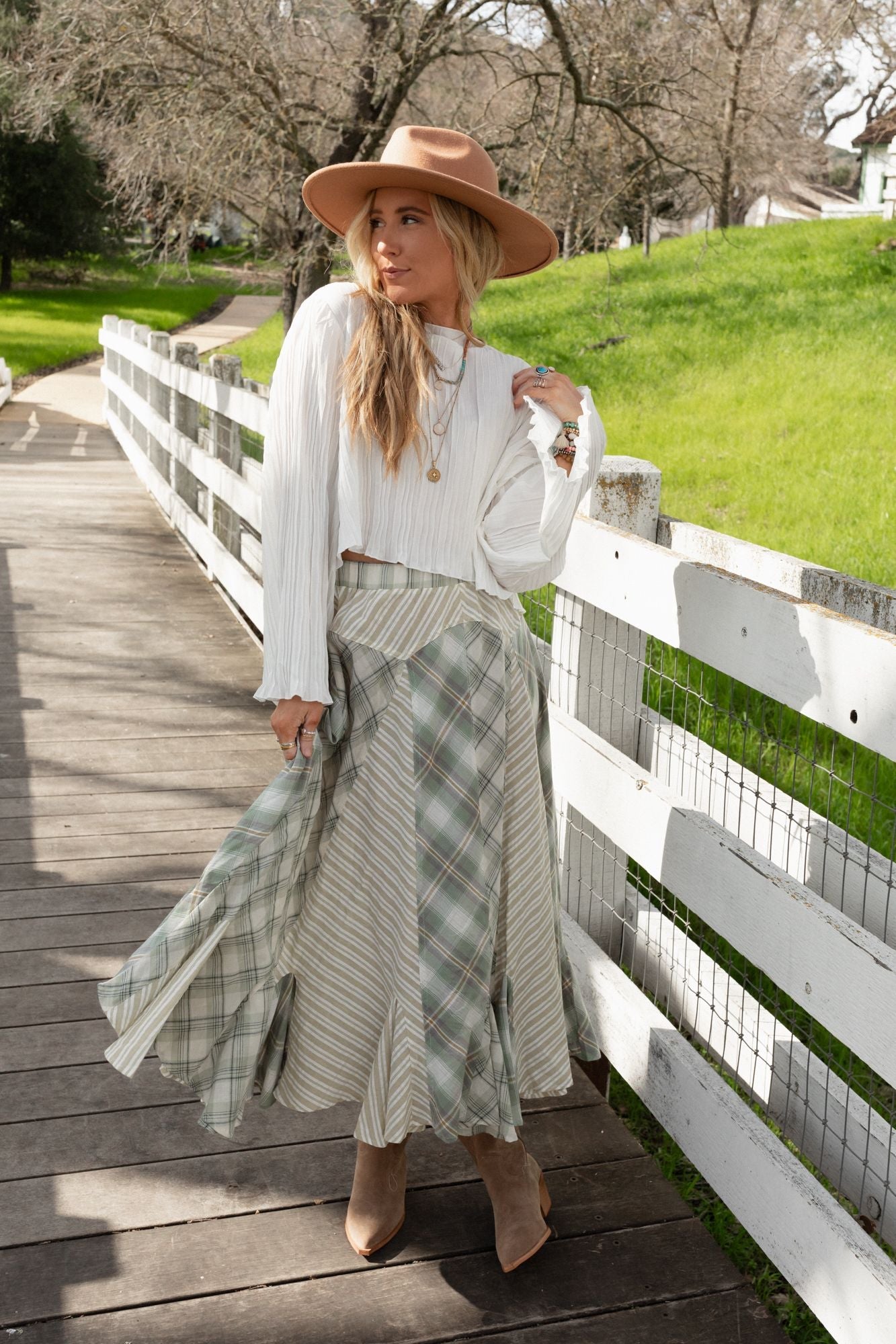Slide into the season in the perfect maxi skirt, our Twirl With Us Maxi Skirt is a fusion of prints and patterns, creating an eye-popping and free spirited must-have boho look!