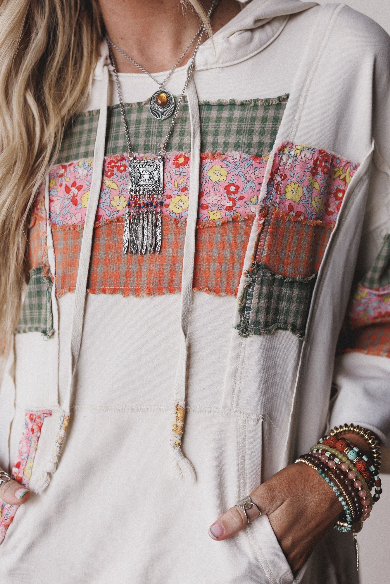 - A cozy-chic layer for cool mornings and firelit nights, this hoodie pullover blends comfort with a distinctly bohemian edge.
