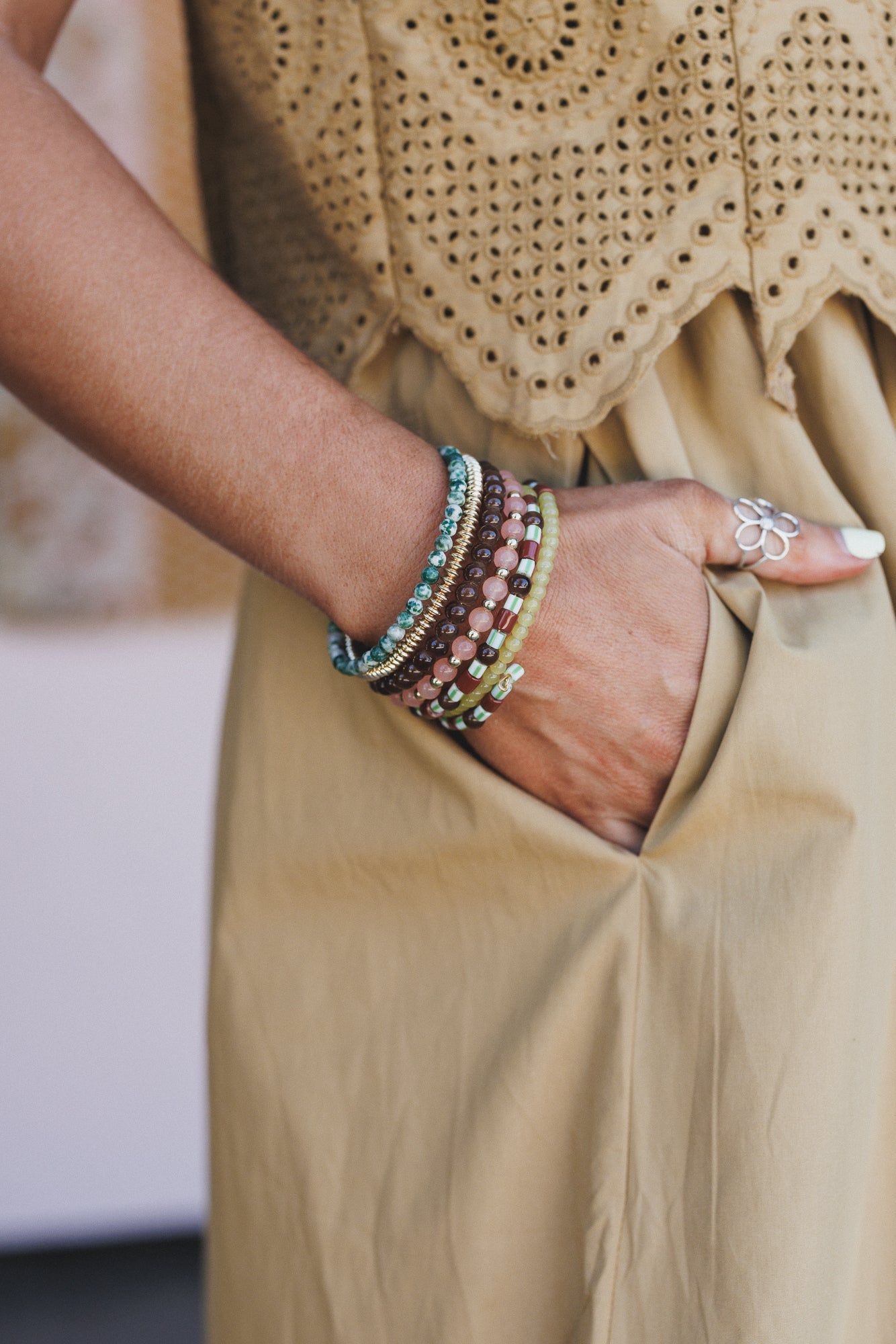This coiled beaded bracelet is such an easy way to add texture to any look, casual or dressy.